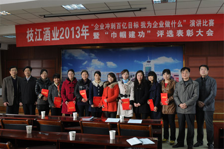 受表彰的先進女職工和公司領導一起合影 3月5日,枝江酒業(yè)組織開展了慶“三八”系列活動。表彰了一批獲得2012年度“巾幗建功”先進個人,開…