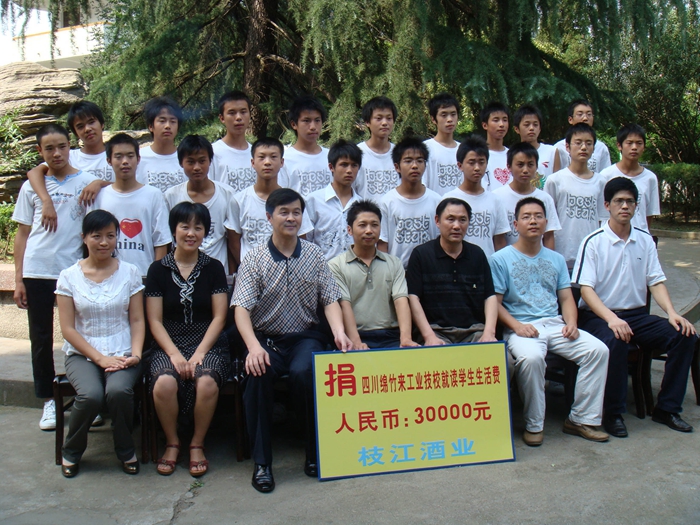 本報(bào)訊(通訊員 蔡 兵)6月25日,枝江酒業(yè)資助20名綿竹災(zāi)區(qū)學(xué)生捐款儀式在宜昌市工業(yè)技工學(xué)校會(huì)議室舉行,該公司工會(huì)主席楊家法將3萬元捐款遞…