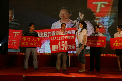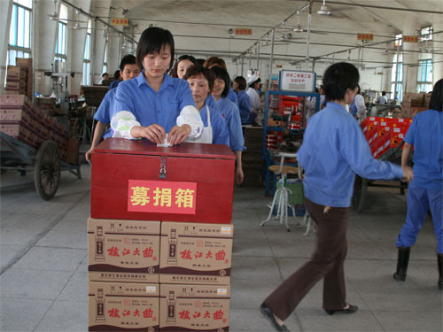 5月13日,枝江酒業(yè)公司工會(huì)向全體員工發(fā)出向四川震區(qū)災(zāi)民獻(xiàn)愛(ài)心的倡儀,公司員工紛紛慷慨解囊,短短兩天就已收到捐款25萬(wàn)元,其中公司董事長(zhǎng)…