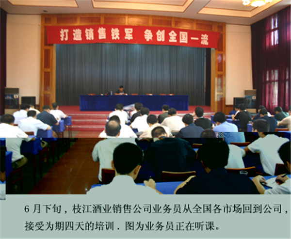 6月下旬,枝江酒業(yè)銷售公司業(yè)務(wù)員從全國(guó)各市場(chǎng)回到公司,接受為期四天的培訓(xùn)。