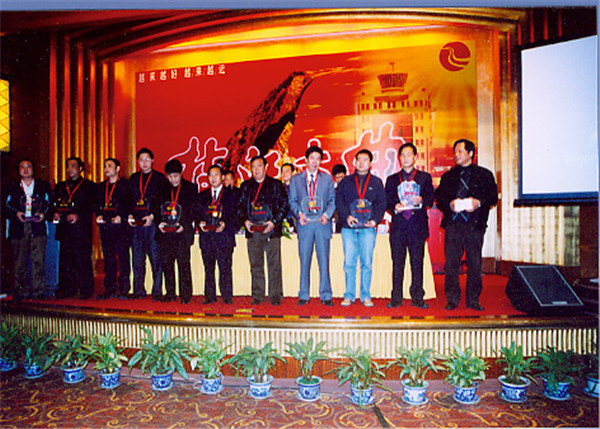 3月21日在成都春季糖酒會(huì)上,枝江酒業(yè)公司對(duì)2004年枝江大曲全國十佳經(jīng)銷商進(jìn)行表彰,并重獎(jiǎng)銷售狀元,圖為十佳經(jīng)銷商在頒獎(jiǎng)大會(huì)上。