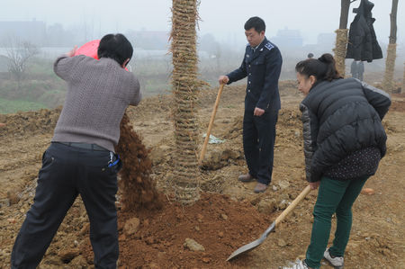 植樹現(xiàn)場(chǎng),枝江酒業(yè)黨委書記張華、副總經(jīng)理亓新明、劉前生同職工們一起揮鍬揚(yáng)鎬,挖坑、種樹、填土,匯聚成一條長(zhǎng)長(zhǎng)的植樹“接力隊(duì)”。
