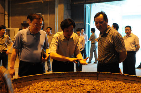 6月15日,黑龍江省政府研究室副主任董偉俊、黑龍江省食品協(xié)會秘書長車有春一行在湖北省政府研究室產(chǎn)業(yè)處處長韓明山、宜昌市政府研究室副主任覃世斌等的陪同下,到枝江酒業(yè)參觀考察。枝江酒業(yè)董事長蔣紅星、常務(wù)副總經(jīng)理譚崇堯、副總經(jīng)理亓新明對來訪客人給予了熱情接待。