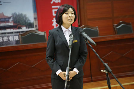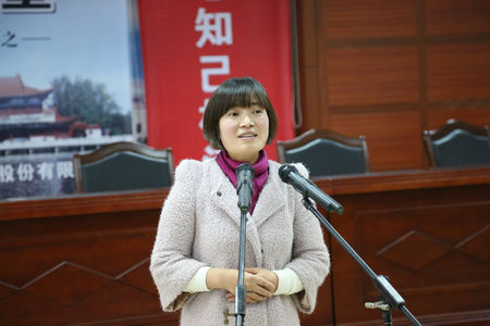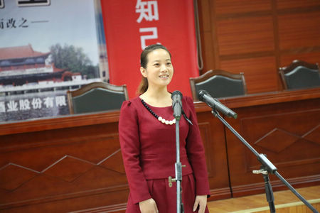 勾儲(chǔ)二車間的王春梅演講《我愿做枝江酒業(yè)的一塊磚》
