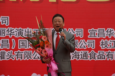 3月13日,枝江市第十四屆桃花藝術(shù)節(jié)在安福寺鎮(zhèn)隆重開幕。開幕式上,主辦方邀請了眾多演藝界的明星助陣,最引人注目的是著名男高音歌唱家蔣大為為大家?guī)淼摹对谀翘一ㄊ㈤_的地方》、《桃花依舊笑春風(fēng)》和他自己作詞作曲的《駿馬奔馳保邊疆》。主持人問蔣大為以前來過枝江沒有,是否熟悉枝江,蔣大為說:“第一次來枝江,只知道枝江大曲?!敝剖侨珖放?,在央視投放廣告十余年,品牌已經(jīng)深入人心。孫紅雷代言枝江酒時期,一句“我們都是有故事的人,知心、知己、枝江酒”不僅傳遍大江南北,還在北京演藝圈成為口頭禪。蔣大為和主持人的對話,贏得臺下熱烈的掌聲。一曲《在那桃花盛開的地方》幾乎“亂了”現(xiàn)場秩序,站起來拍照的、跟著蔣大為一起演唱的,整個現(xiàn)場的激情被蔣大為音清質(zhì)淳的歌聲點(diǎn)燃。參加開幕式的當(dāng)?shù)厝罕姡S多都是蔣大為的歌迷,此次能近距離地聽蔣大為唱歌,他們表示真像過節(jié)一樣高興。