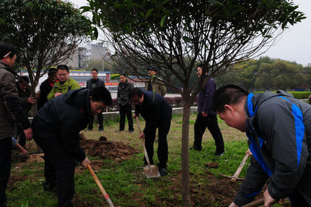 3月19日,由枝江酒業(yè)總裁曹榮開帶隊(duì),總經(jīng)理陳洪衛(wèi)、黨委書記張華等高管及部分員工代表到百里洲鎮(zhèn)進(jìn)行義務(wù)植樹活動(dòng)。百里洲鎮(zhèn)被譽(yù)為“萬里長江第一洲”,是全國少有的農(nóng)業(yè)大鎮(zhèn),以其獨(dú)特的地理位置在全國有較高的知名度。特別是近幾年火熱的環(huán)島自行車比賽,吸引了不少外國朋友的參與,已經(jīng)成為自行車愛好者的樂園。為支持百里洲做好綠化、亮化和美化工程,枝江酒業(yè)積極參與其中。枝江酒業(yè)總裁曹榮開表示:栽下一棵樹,是為了結(jié)下三分緣,結(jié)一分“綠滿荊楚”的緣,結(jié)一分為“城鄉(xiāng)一體、四化同步”添新綠的緣,結(jié)一分融入大自然的緣。百里洲鎮(zhèn)在抗洪廣場周邊規(guī)劃了“義務(wù)植樹林”,枝江酒業(yè)在規(guī)劃的區(qū)域植下9棵樹冠飽滿圓潤、分支點(diǎn)在1.6米以上、米徑10米以上的桂花樹。