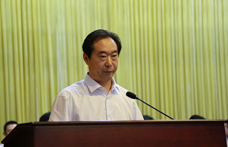 中國輕工業(yè)聯(lián)合會(huì)科技環(huán)保部主任于學(xué)軍為枝江市授牌
