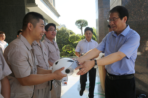 在全市上下努力爭創(chuàng)全國文明典范城市之際,為進一步提升職工安全意識,保護職工道路交通安全,8月11日,枝江酒業(yè)聯(lián)合人保財險枝江支公司開展了安全頭盔發(fā)放活動。人保財險枝江支公司經(jīng)理張正新,公司領導張春雷、張華、楊家法參加了發(fā)放儀式。